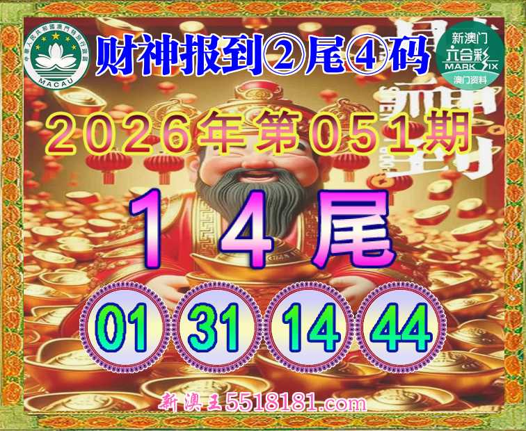 051期: 👘《财神报到》 👘②尾④码👘【14尾主:01.31.14.44】开:01准