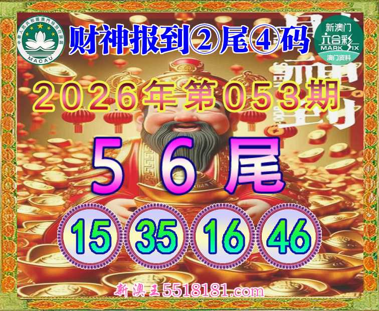 053期: 👘《财神报到》 👘②尾④码👘【56尾主:15.35.16.46】开:15准