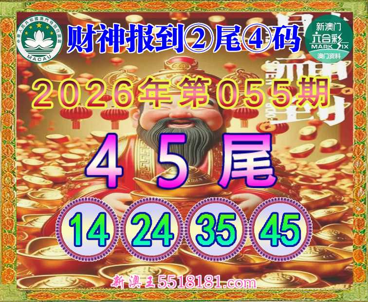 055期: 👘《财神报到》 👘②尾④码👘【45尾主:14.24.35.45】开:14准