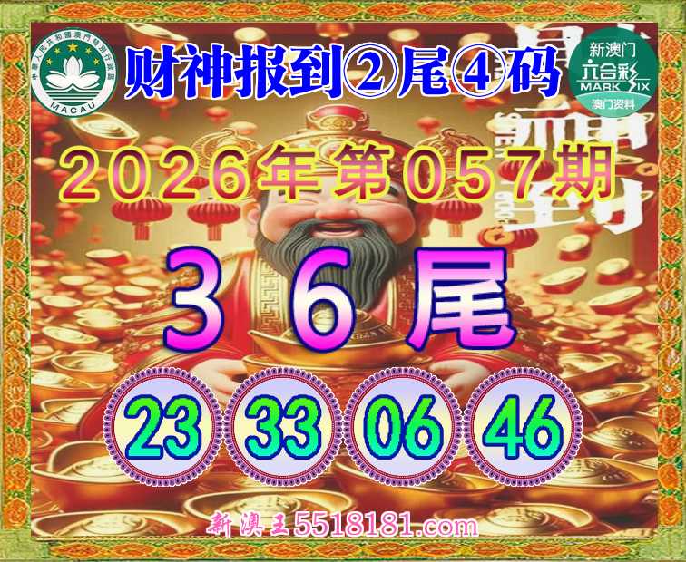057期: 👘《财神报到》 👘②尾④码👘【36尾主:23.33.06.46】开:23准