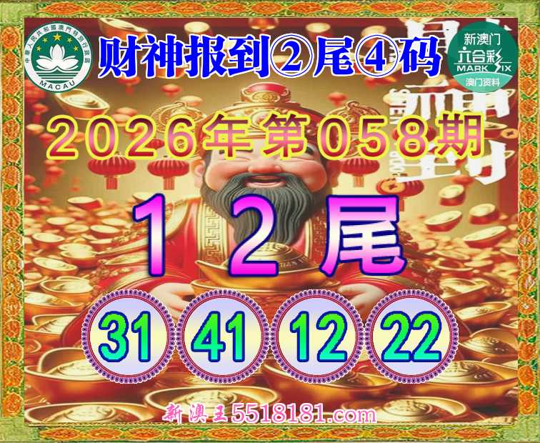 058期: 👘《财神报到》 👘②尾④码👘【12尾主:31.41.12.22】开:31准