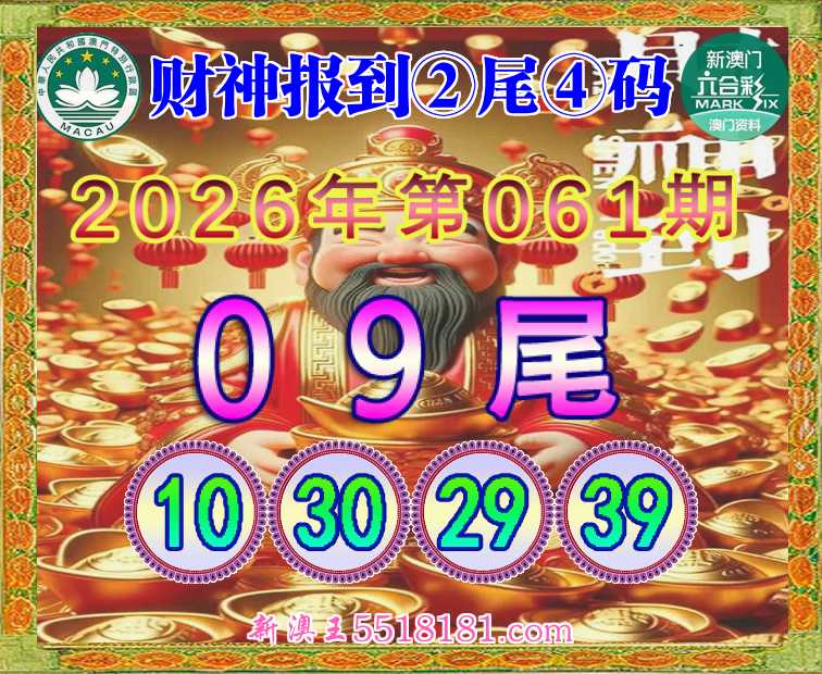 061期: 👘《财神报到》 👘②尾④码👘【09尾主:10.30.29.39】开:29准