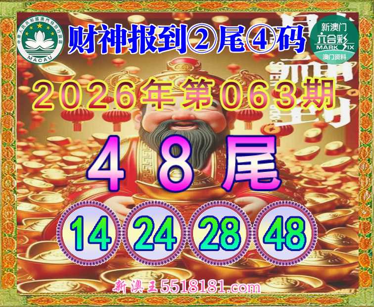 063期: 👘《财神报到》 👘②尾④码👘【48尾主:14.24.28.48】开:28准