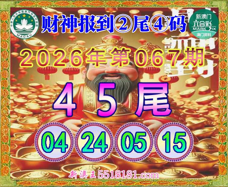 067期: 👘《财神报到》 👘②尾④码👘【45尾主:04.24.05.15】开:05准