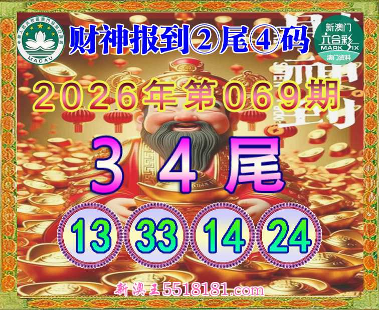 069期: 👘《财神报到》 👘②尾④码👘【34尾主:13.33.14.24】开:24准