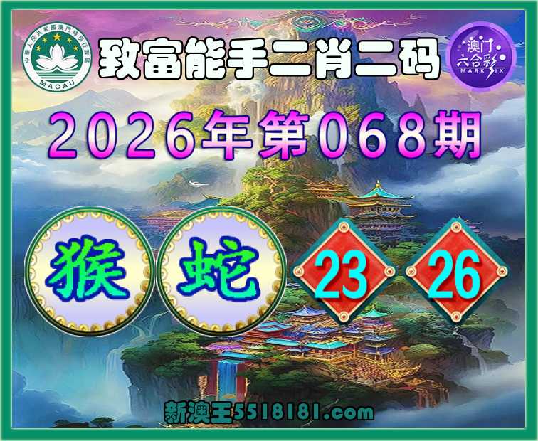 068期: 👉《致富能手》 👉二肖二码👉【猴蛇】【23.26】开:猴23准